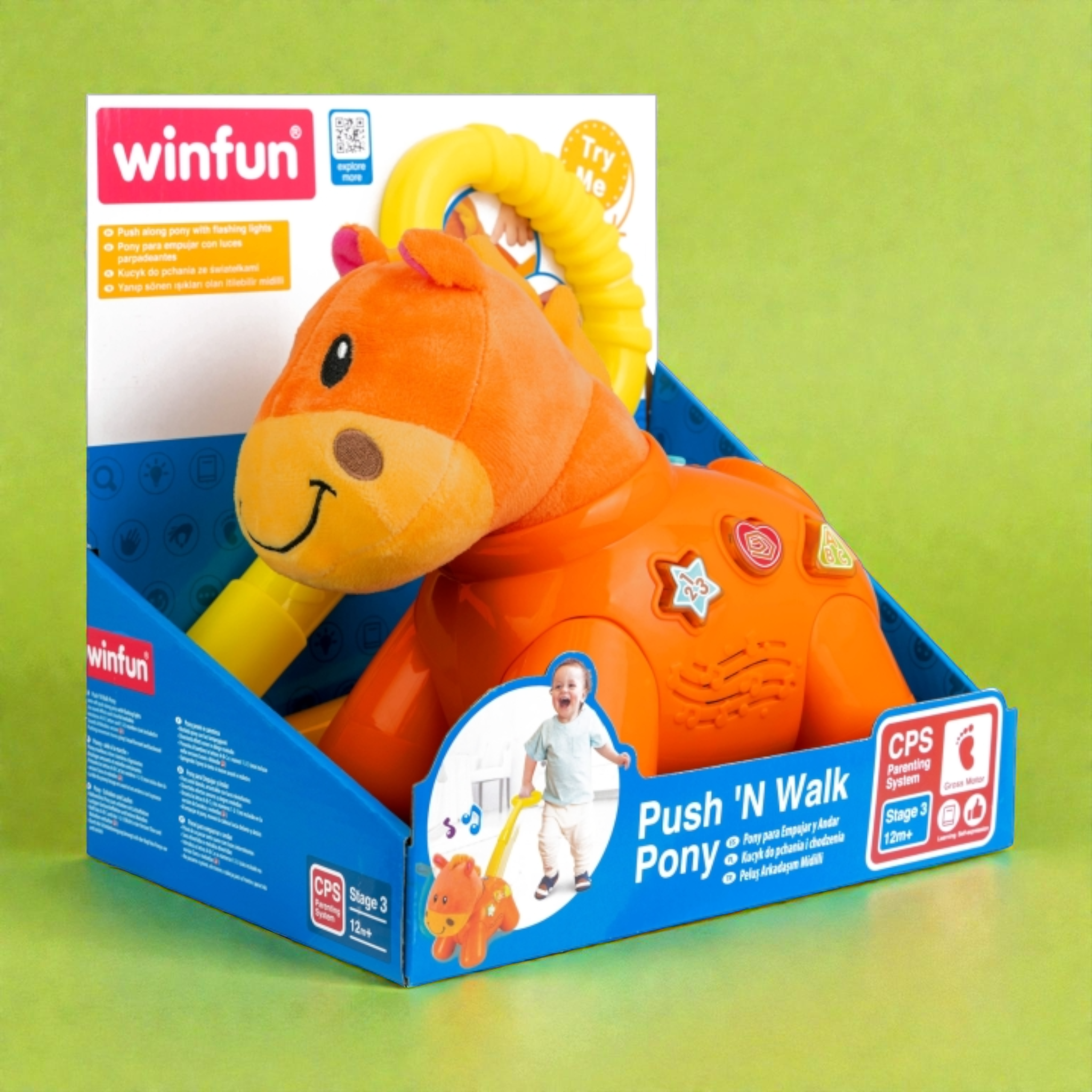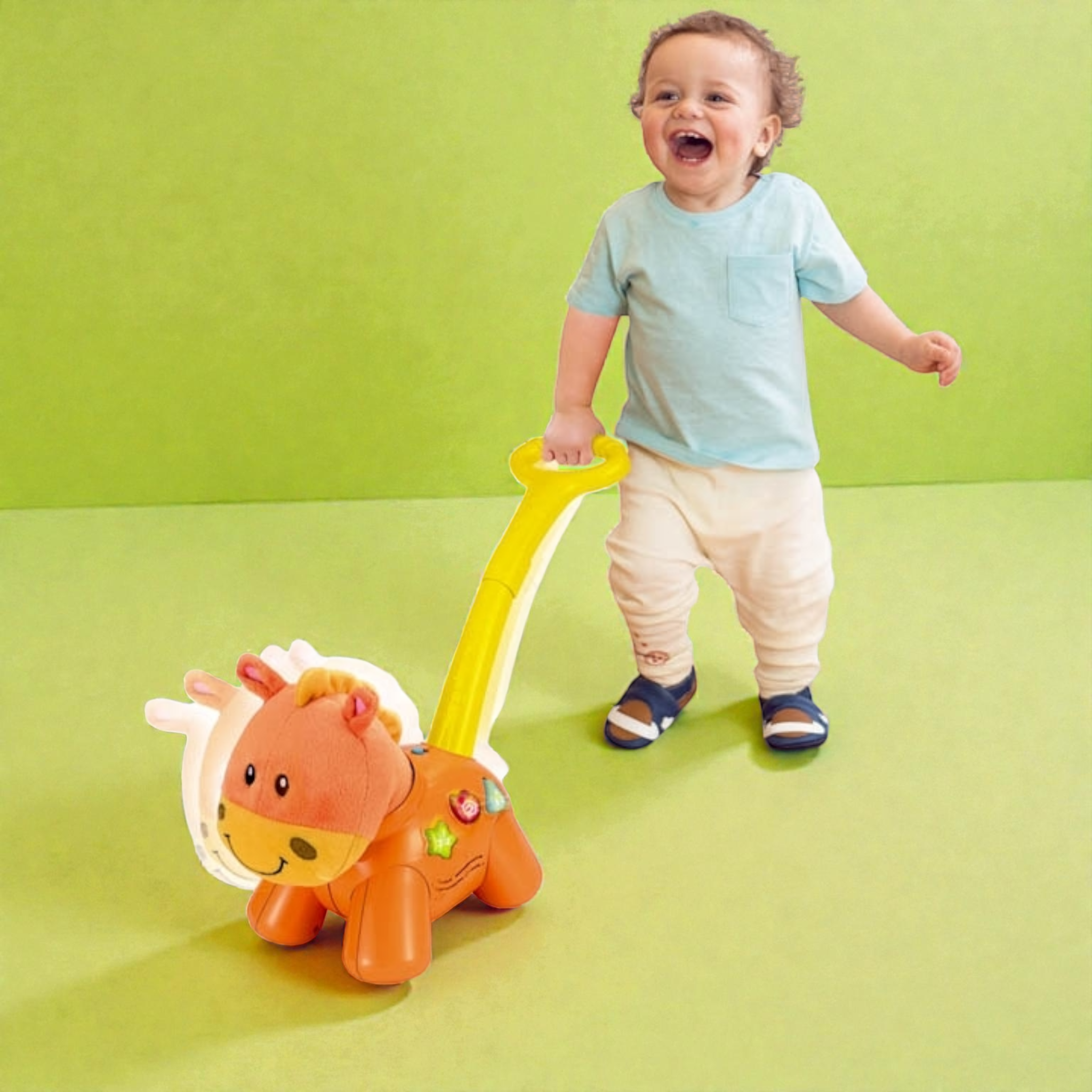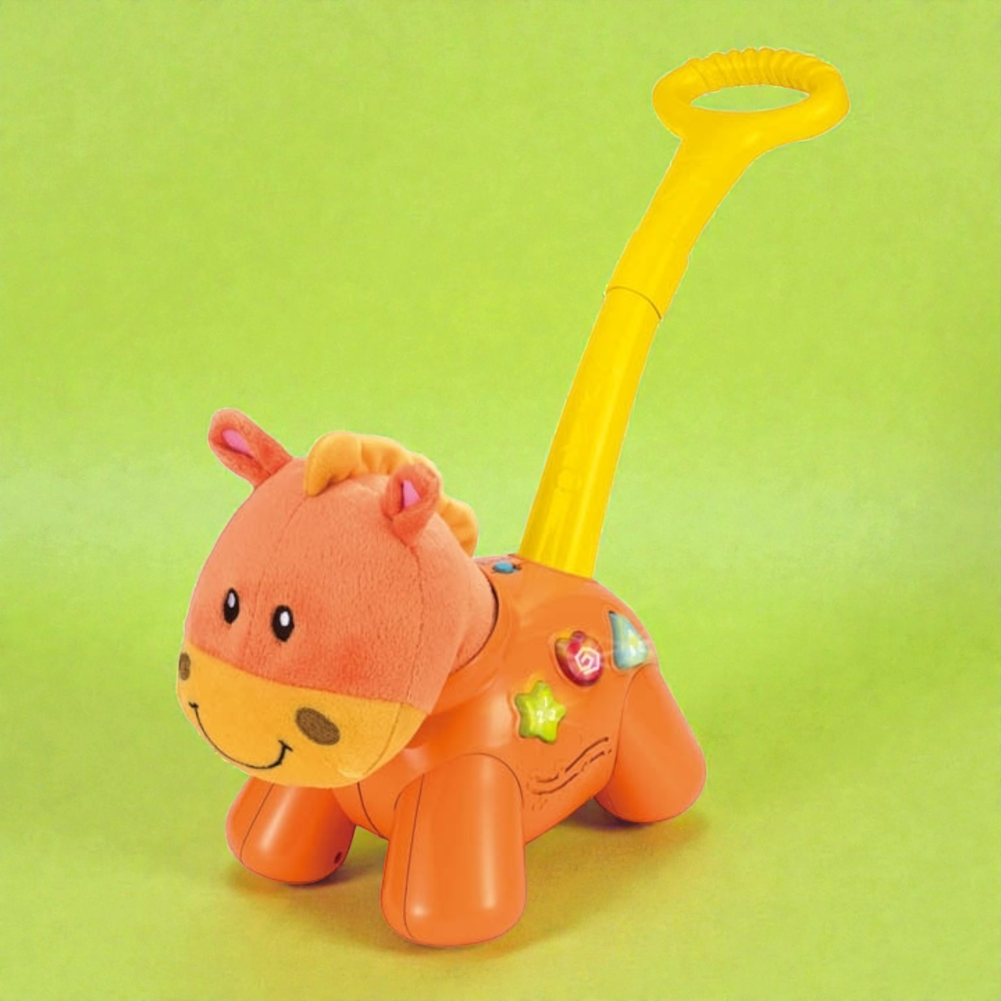 شجع خطوات طفلك الأولى بمتعة وإثارة مع المهر الصغير! هذه اللعبة الكلاسيكية للدفع مصنوعة من مواد آمنة ومتينة، ومصممة هندسياً لتكون سهلة الاستخدام للأطفال الصغار. عند دفع المهر، يتحرك للأمام ويصدر أصواتاً مرحة وألحاناً خفيفة تجذب انتباه الطفل وتشجعه على الاستمرار في المشي واللعب النشط، مما يطور التوازن والتنسيق الحركي.