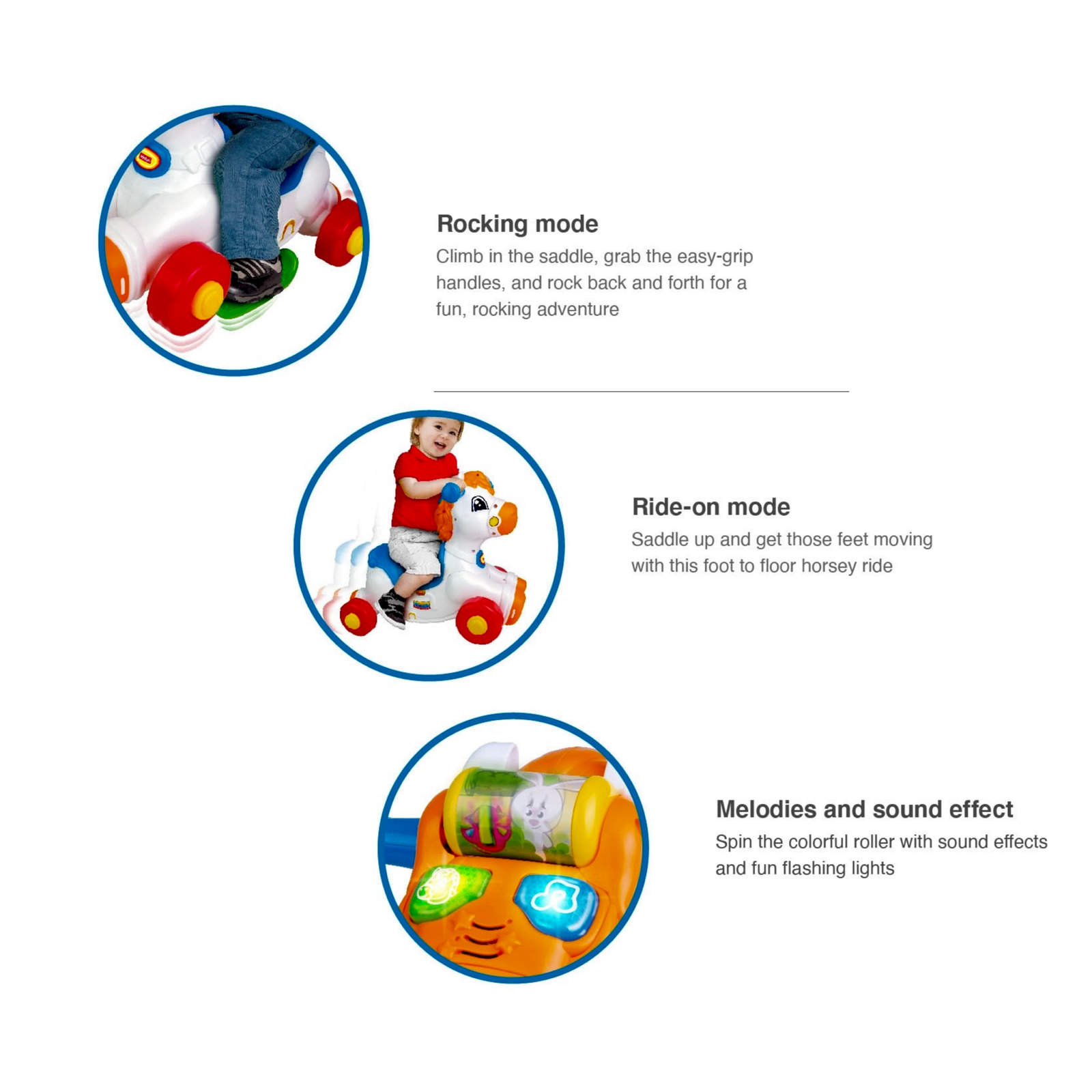 A fun rocking rider that supports movement and balance for indoor play.