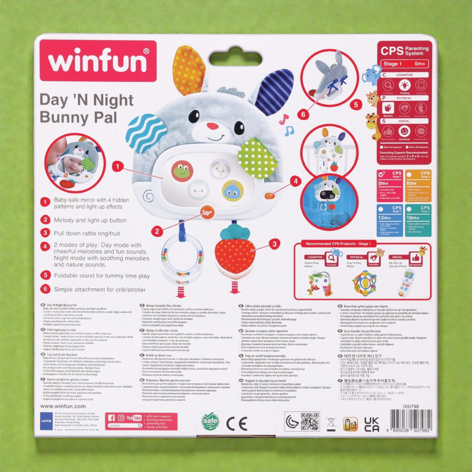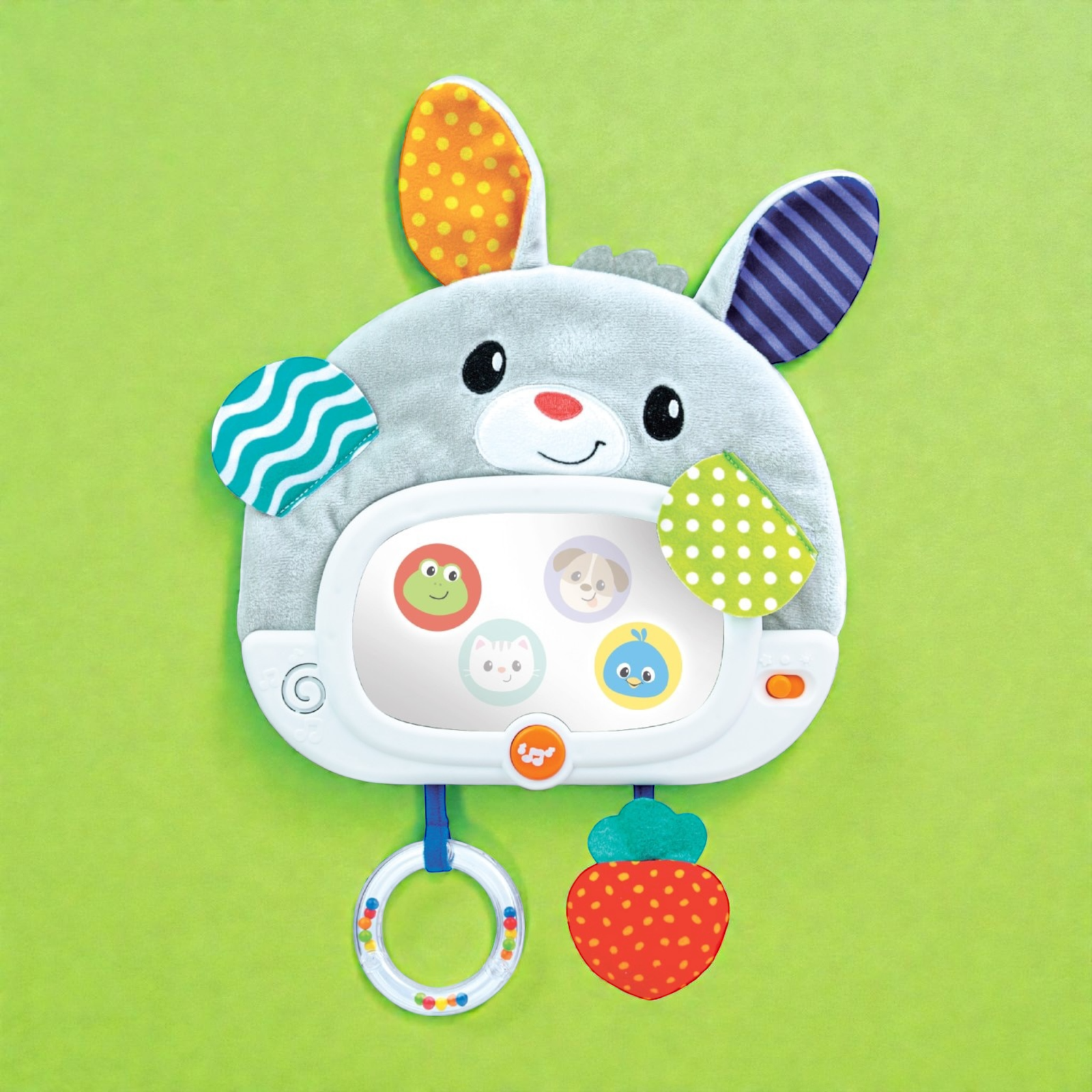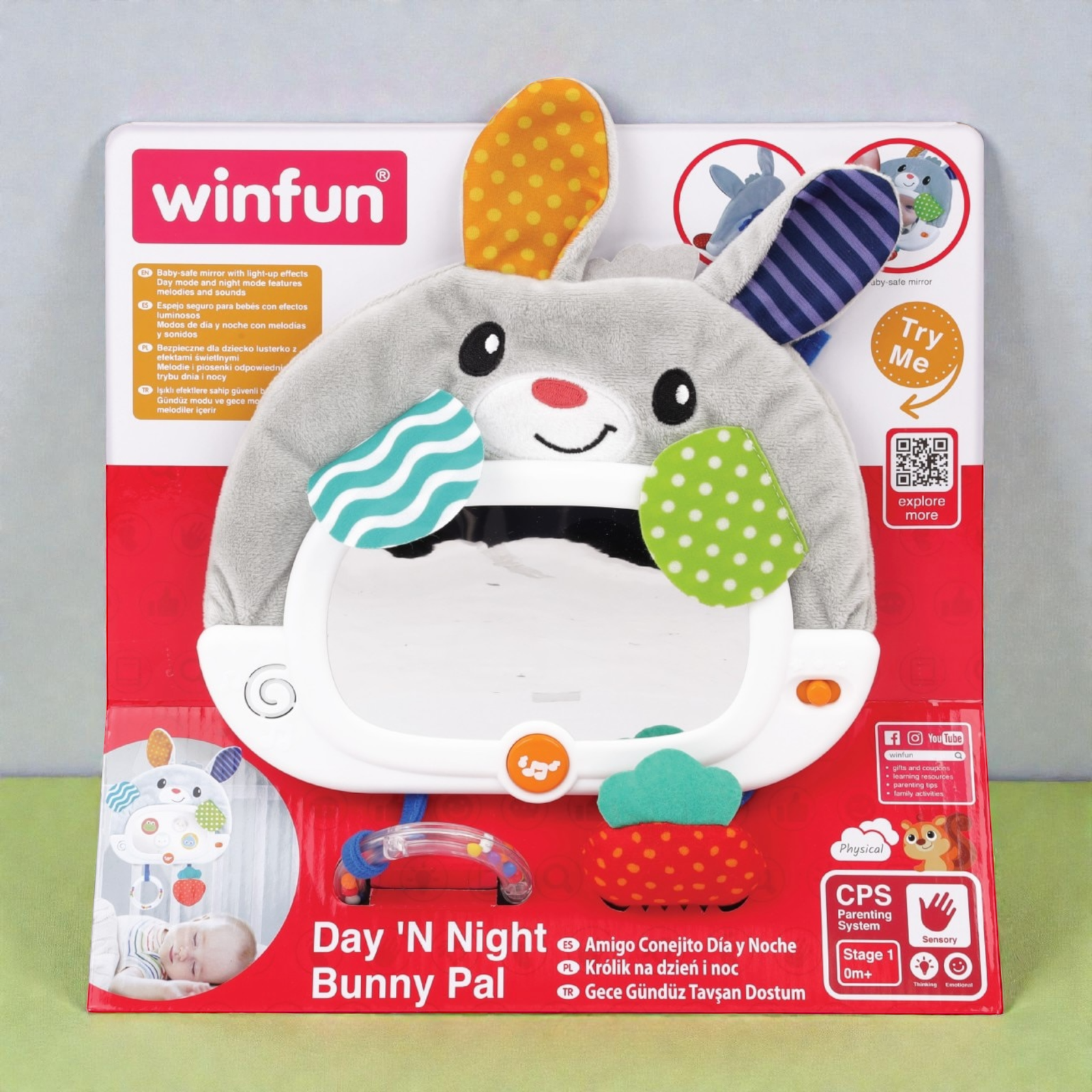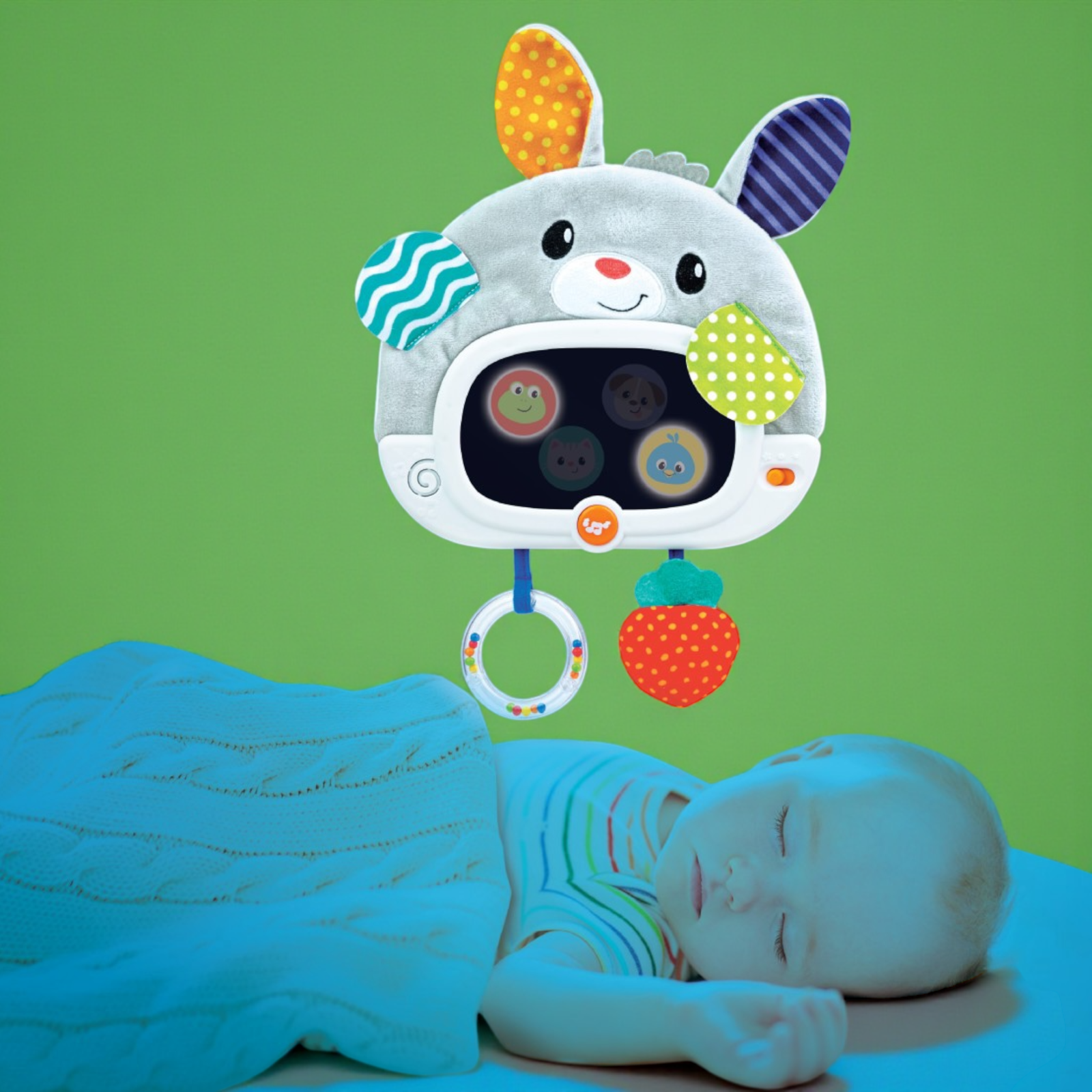الرفيق المثالي لطفلك طوال اليوم! هذا الأرنب الناعم والمتعدد الاستخدامات مصمم لمرافقة طفلك في وقت اللعب ووقت النوم. يتميز بمرآة آمنة للأطفال مع تأثيرات إضاءة و4 أنماط مخفية، ووضعَي تشغيل: