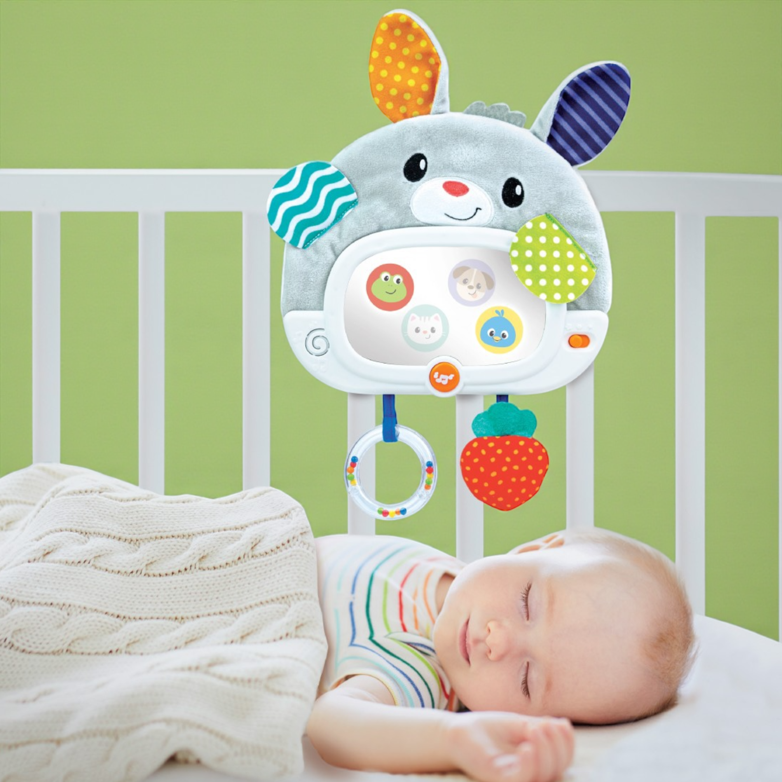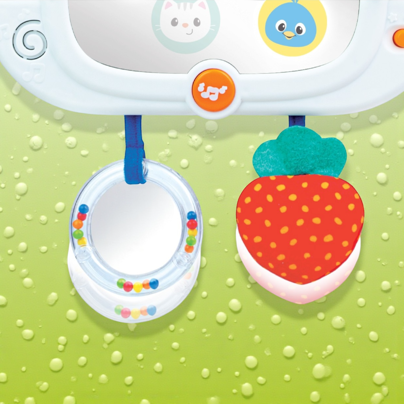 متعددة التركيب: يمكن ربطها بسرير الطفل أو عربة الأطفال، أو استخدامها لوقت اللعب على البطن (Tummy Time).
