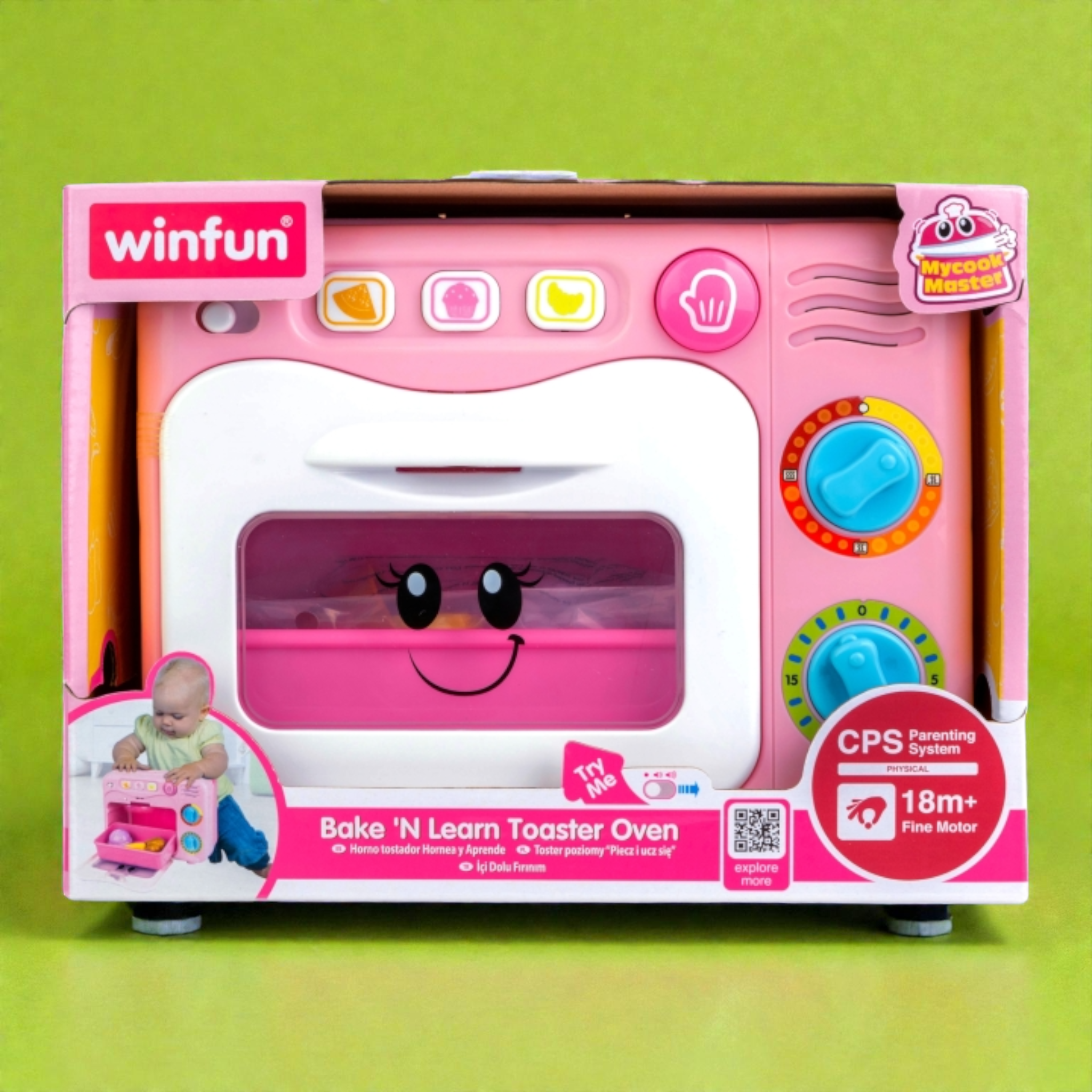 حان وقت الخبز والمرح في مطبخ صغيرك! يتيح هذا الفرن الصغير للأطفال تقليد الكبار في المطبخ بأمان. يتميز بأصوات واقعية للخبز وطرق مختلفة لإعداد الطعام، بالإضافة إلى ضوء داخلي يضيء عند التشغيل. تأتي اللعبة مع إكسسوارات طعام صغيرة (مثل الخبز المحمص والكعك) لتعزيز اللعب التخيلي وتطوير المهارات الاجتماعية والمعرفية للطفل.