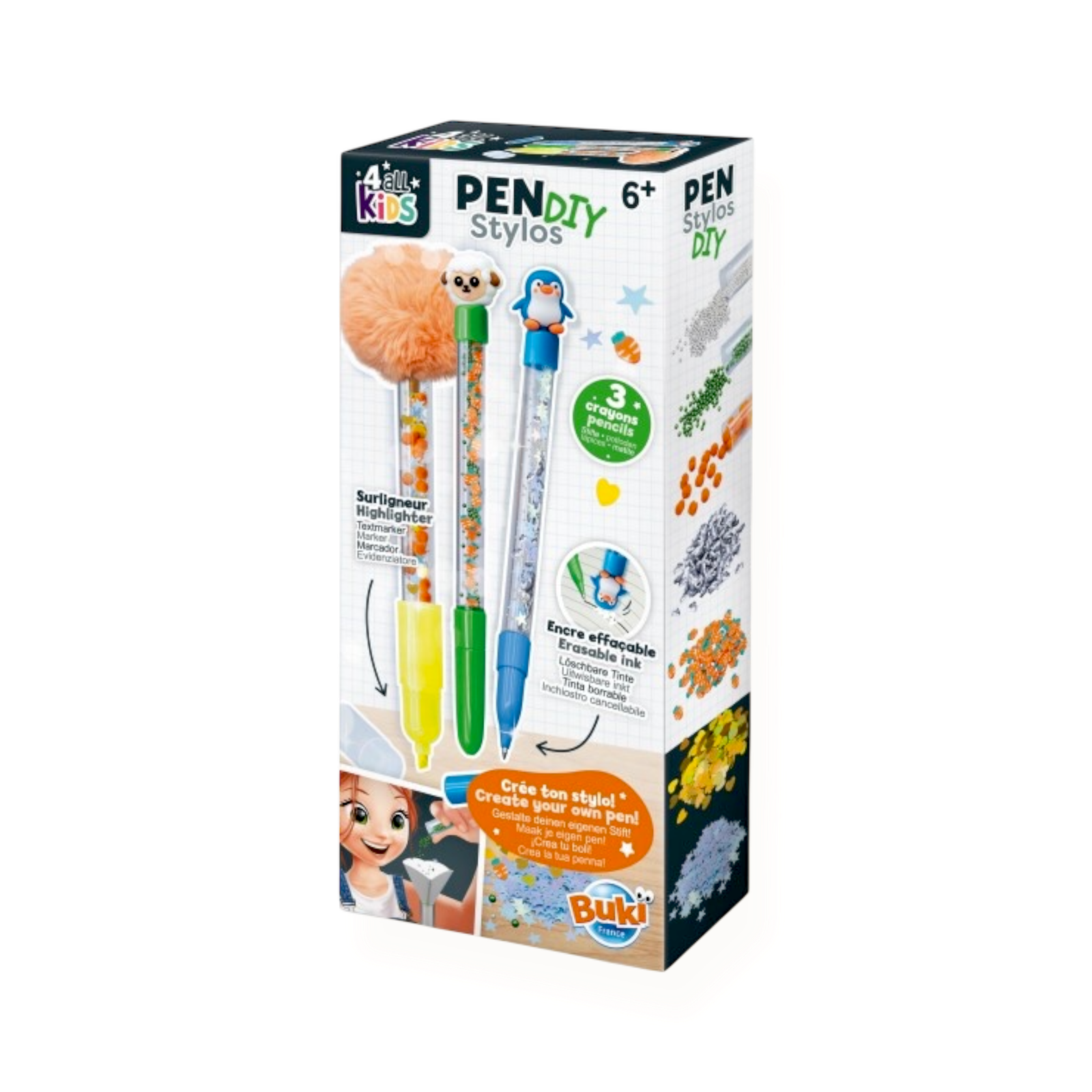 قلم اصنعه بنفسك بتصاميم حيوانات DIY Animals من BUKI FRANCE هي مجموعة نشاط/إبداع مناسبة للأطفال للاستمتاع بالتصميم والتجربة بطريقة آمنة وممتعة.