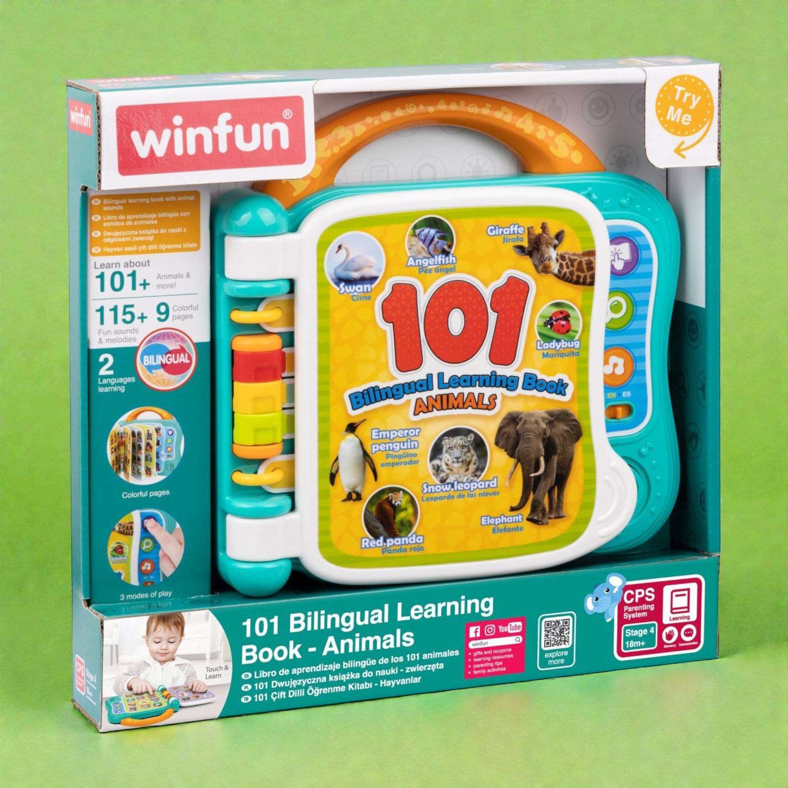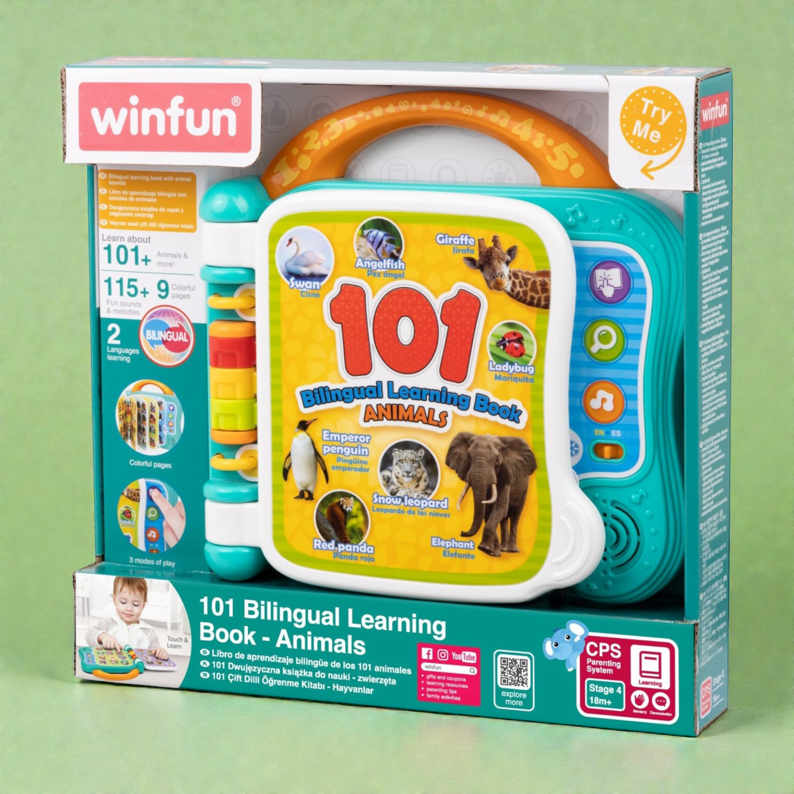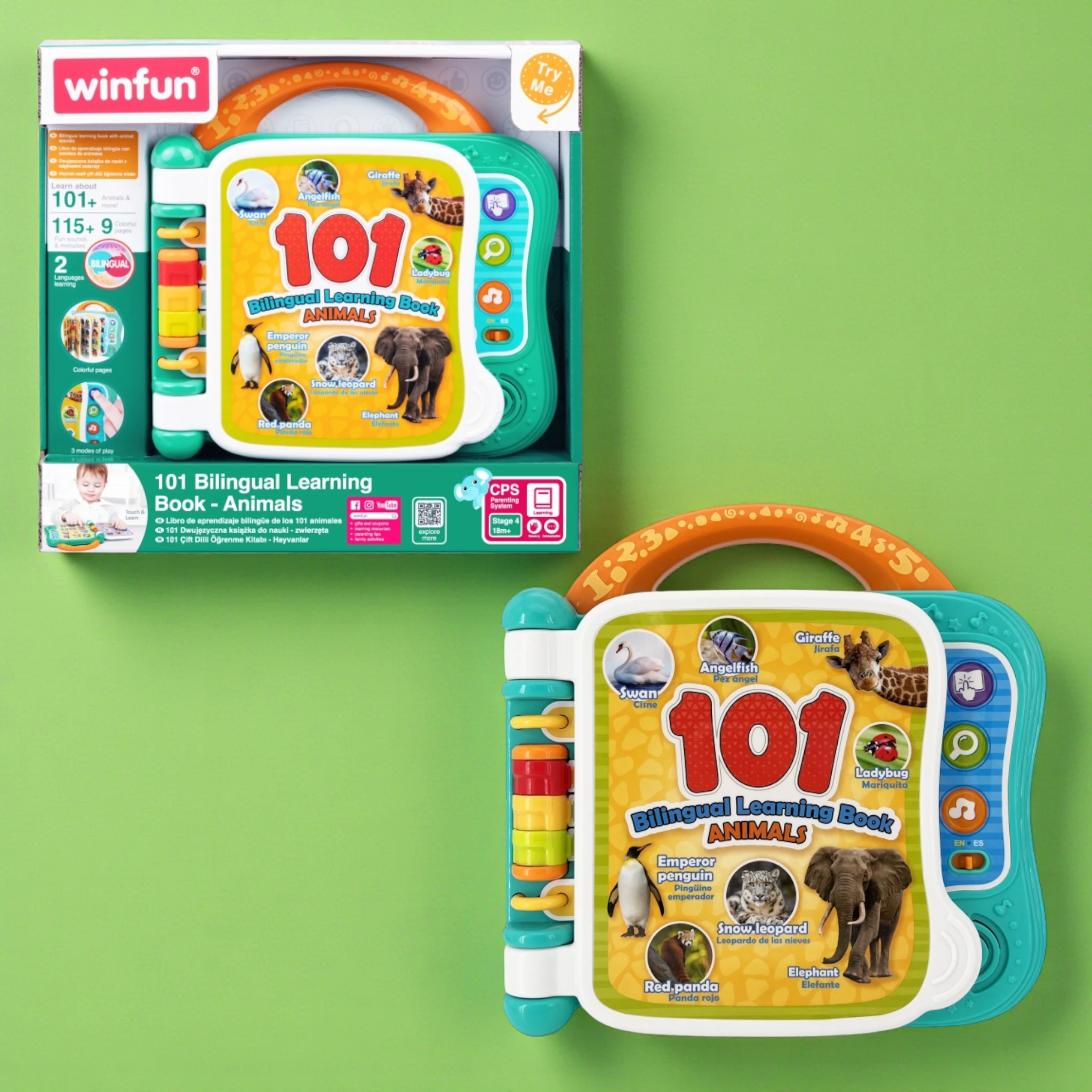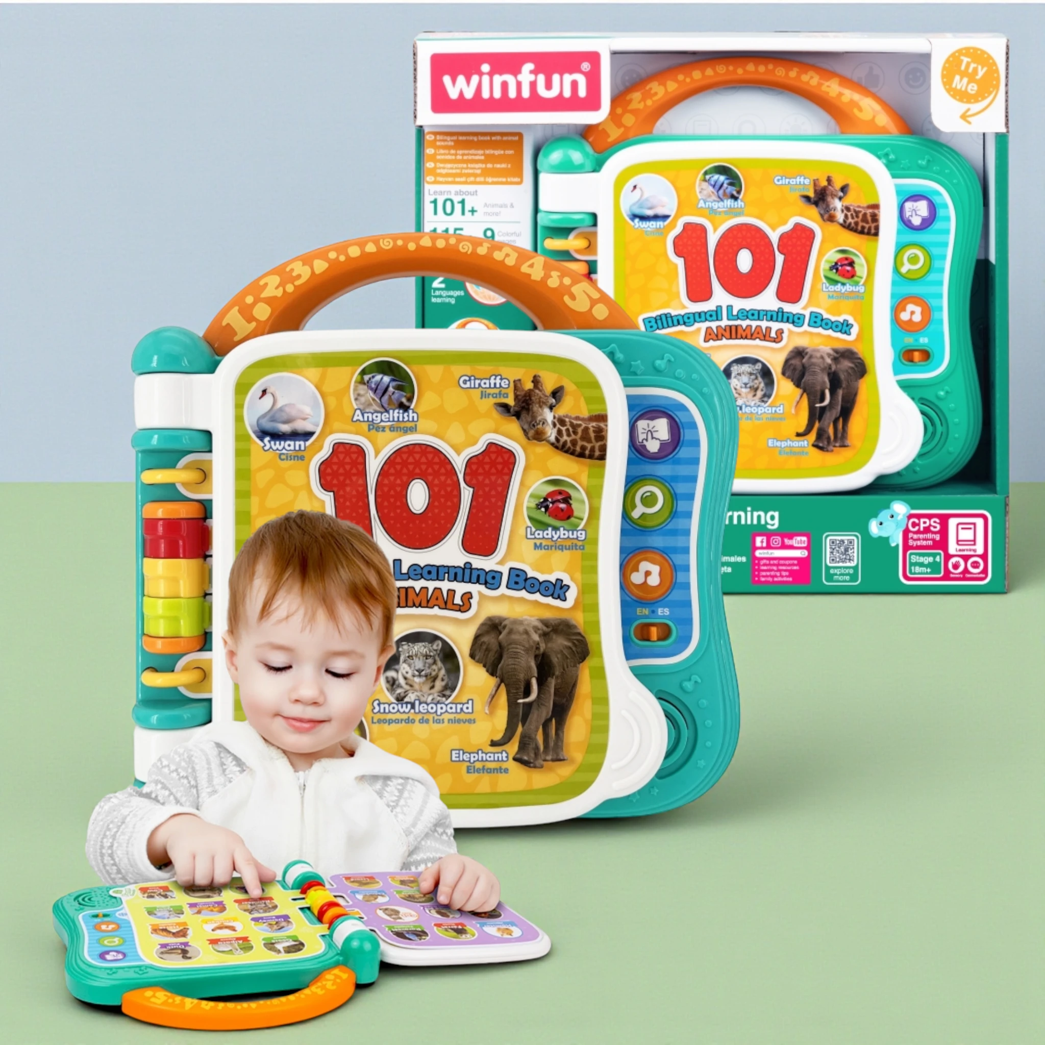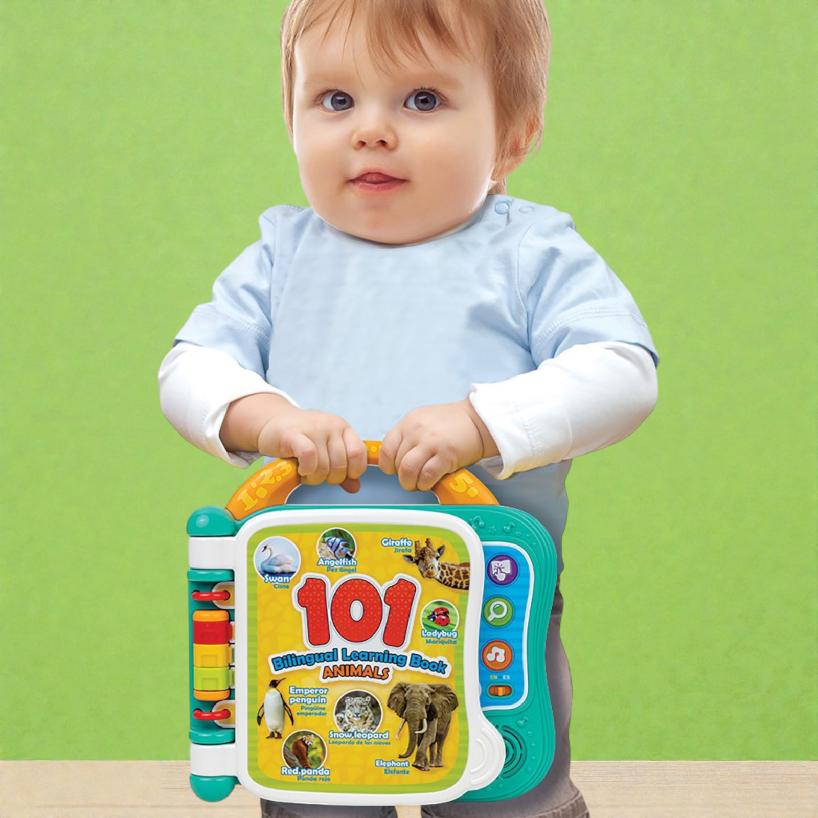 بناء المفردات أصبح سهلاً وممتعاً! هذا الكتاب التعليمي ثنائي اللغة هو الأداة المثالية لتقديم اللغتين العربية والإنجليزية لطفلك. يتميز بـ 10 صفحات ملونة تحتوي على رسوم توضيحية لأكثر من 101 كلمة عن الحيوانات. مع 3 أوضاع لعب تفاعلية (الكلمات، الأصوات، والحقائق الممتعة)، يمكن للأطفال النقر على الصور لسماع الكلمات والنطق الصحيح، مما يعزز مهارات الاستماع والتعلم المبكر .