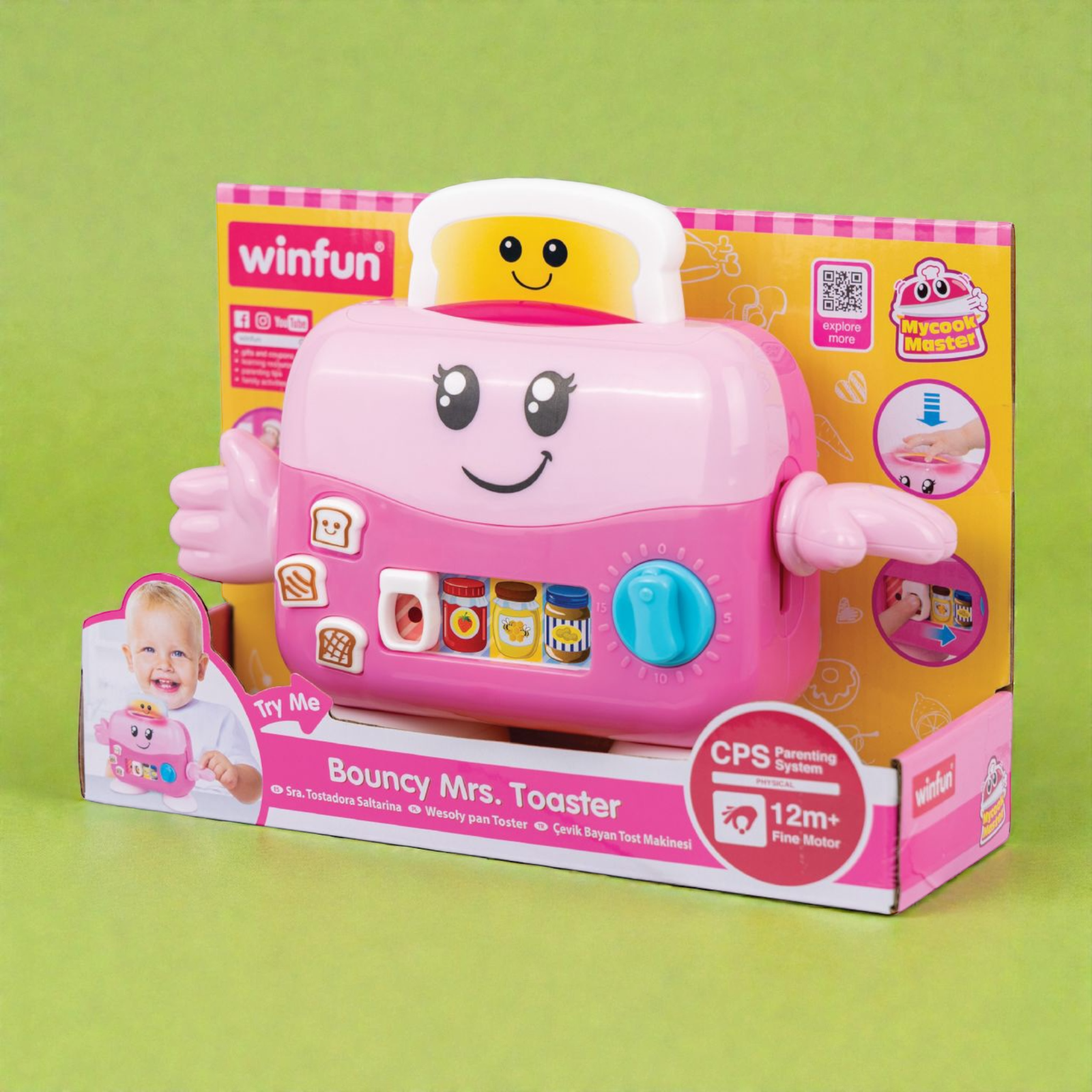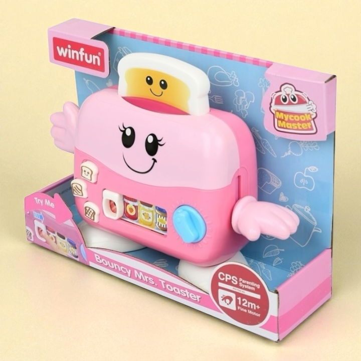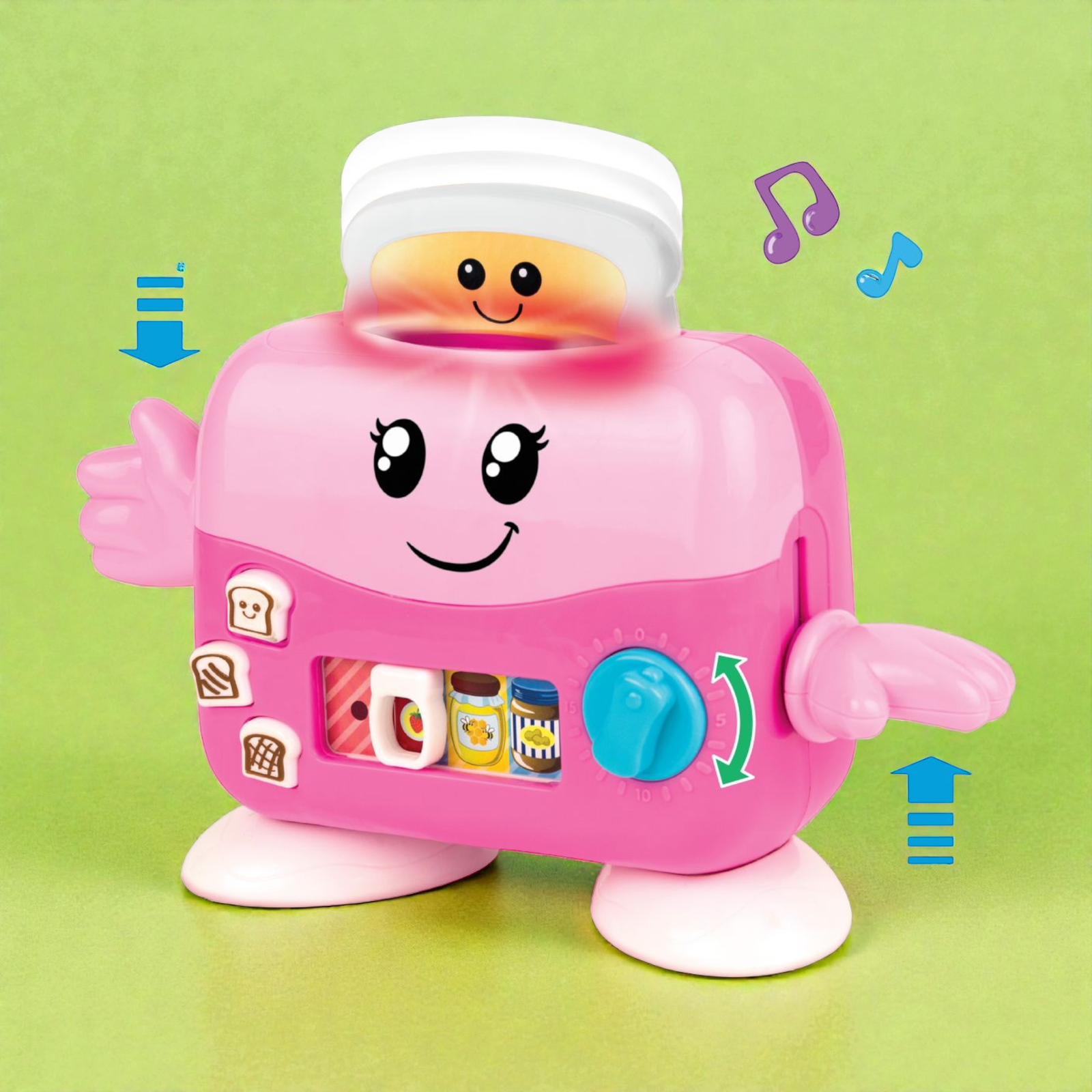 أضف لمسة من المرح إلى وقت لعب طفلك مع محمصة الخبز النطاطة! هذه اللعبة المبتكرة ليست مجرد محمصة عادية، فهي تتحرك (تنط) وتصدر أصواتاً واقعية ومضحكة وتضيء عند تفاعل الطفل معها. إنها مثالية لتشجيع اللعب التخيلي في المطبخ وتطوير المهارات السمعية والبصرية.