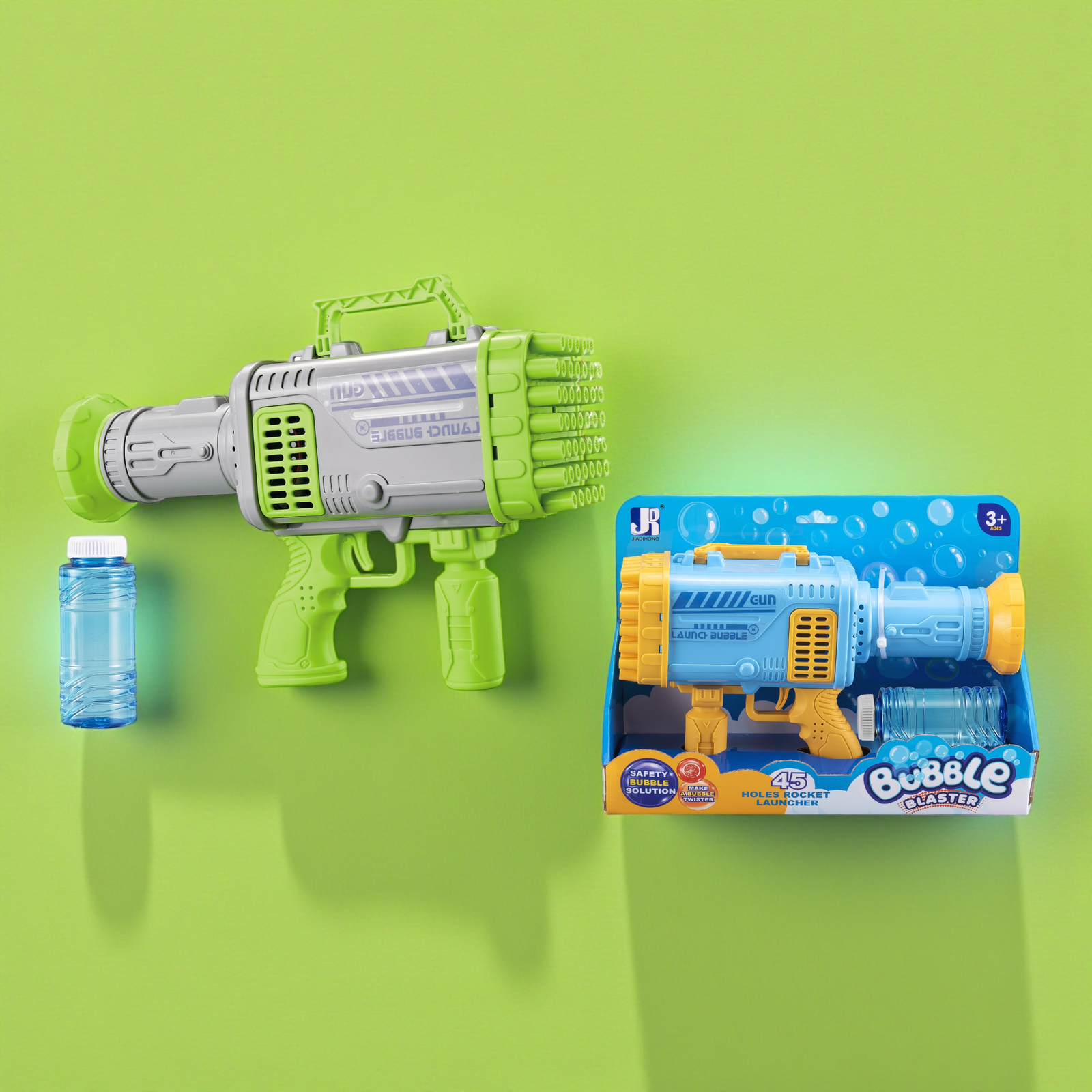 ادخل عالم المستقبل مع مسدس الفقاعات المبتكر هذا الذي يحتوي على 69 فتحة! يطلق هذا المسدس وابلاً كثيفاً وغير مسبوق من مئات الفقاعات في ثوانٍ بضغطة زر واحدة. مزود أيضاً بإضاءة LED مبهرة تضيف تأثيراً بصرياً رائعاً، خاصة في المساء. إنه المنتج الأكثر طلباً لمحبي الفقاعات والفعاليات الكبيرة.