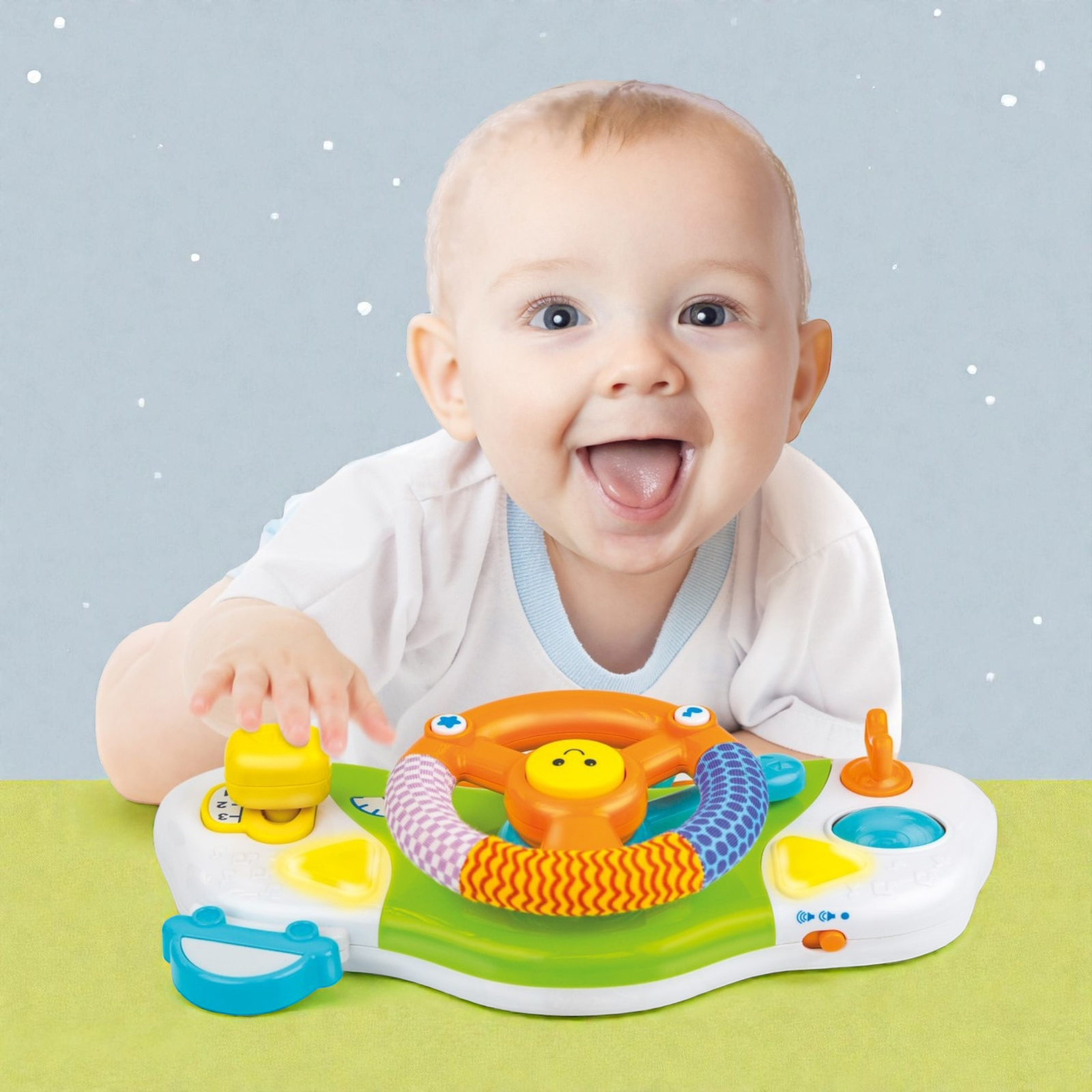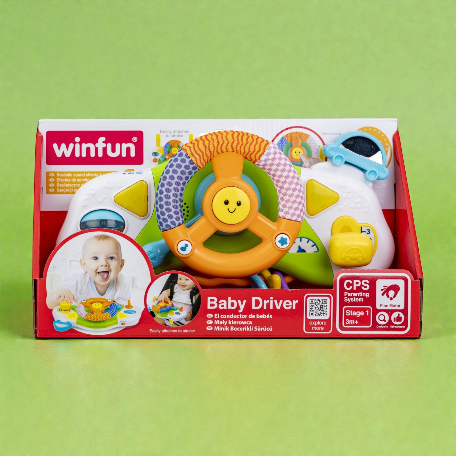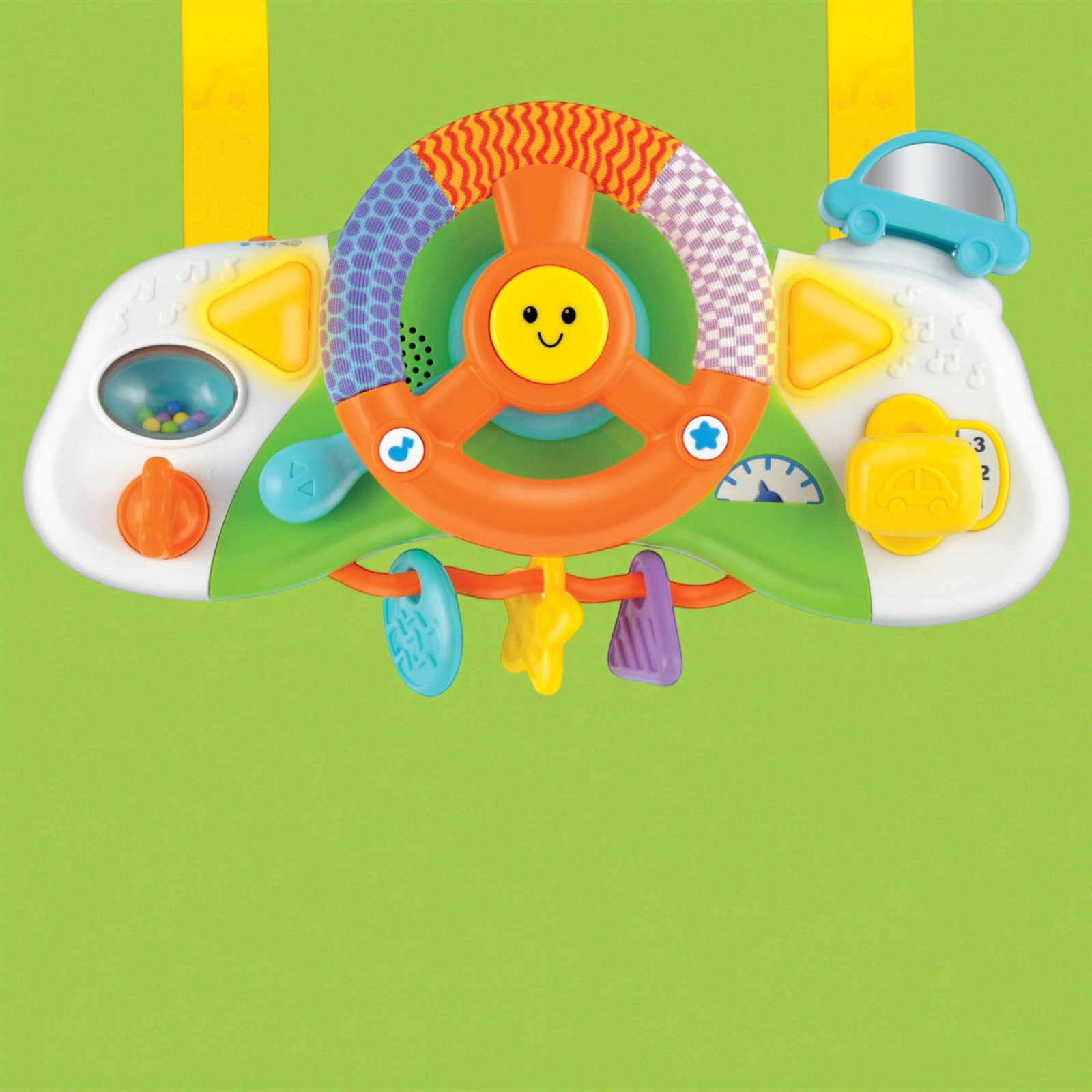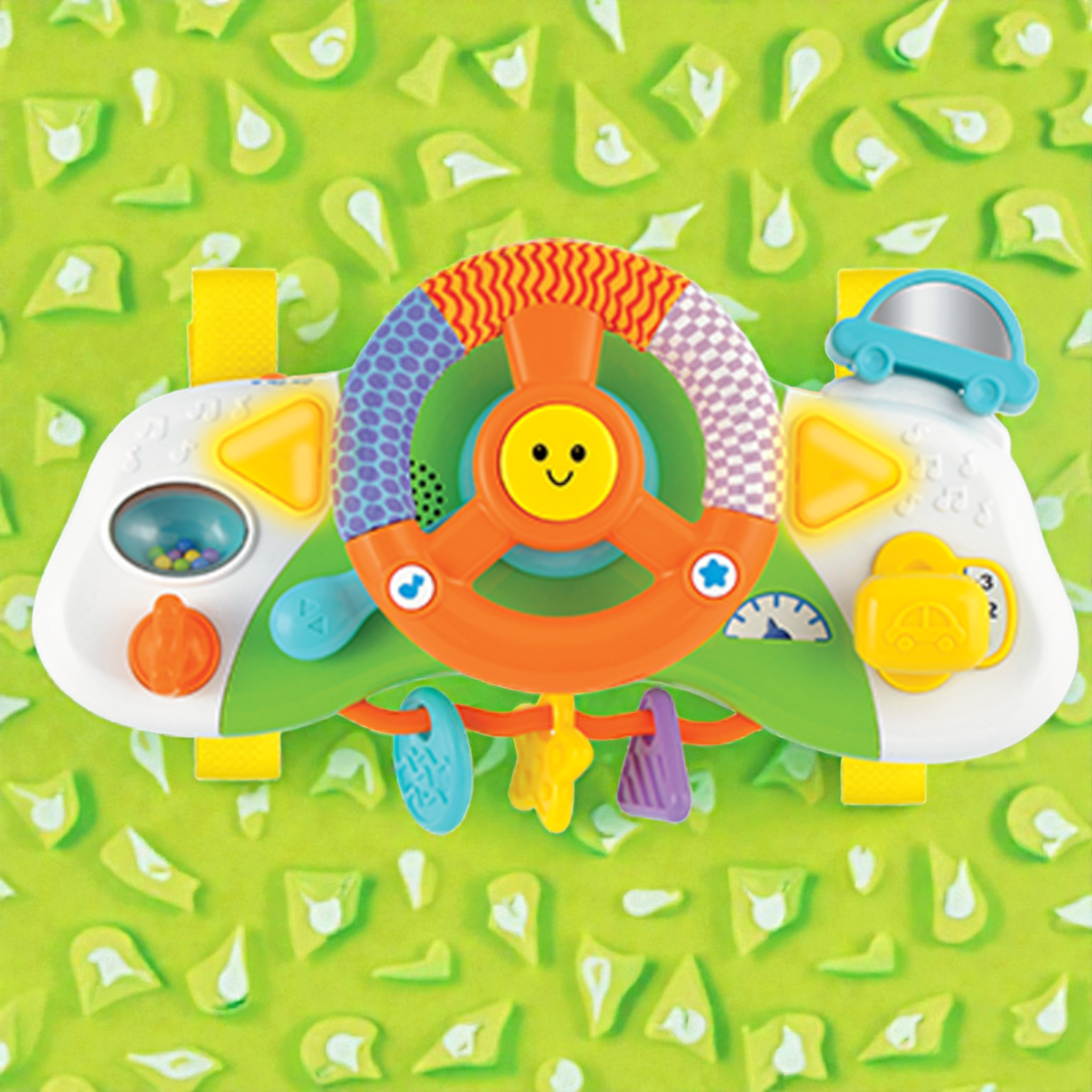 امنح طفلك إحساساً حقيقياً بالقيادة! هذا المقود التفاعلي مصمم بشكل واقعي ومصغر ليناسب أيدي الأطفال الصغيرة. يمكن تثبيته بسهولة على عربة الأطفال أو استخدامه بشكل منفصل، ويحتوي على أصوات بوق، محرك، وإشارات ضوئية لتقليد تجربة القيادة الحقيقية. يشجع على اللعب التخيلي ويطور التنسيق بين اليد والعين ومهارات الإمساك لدى الرضع.