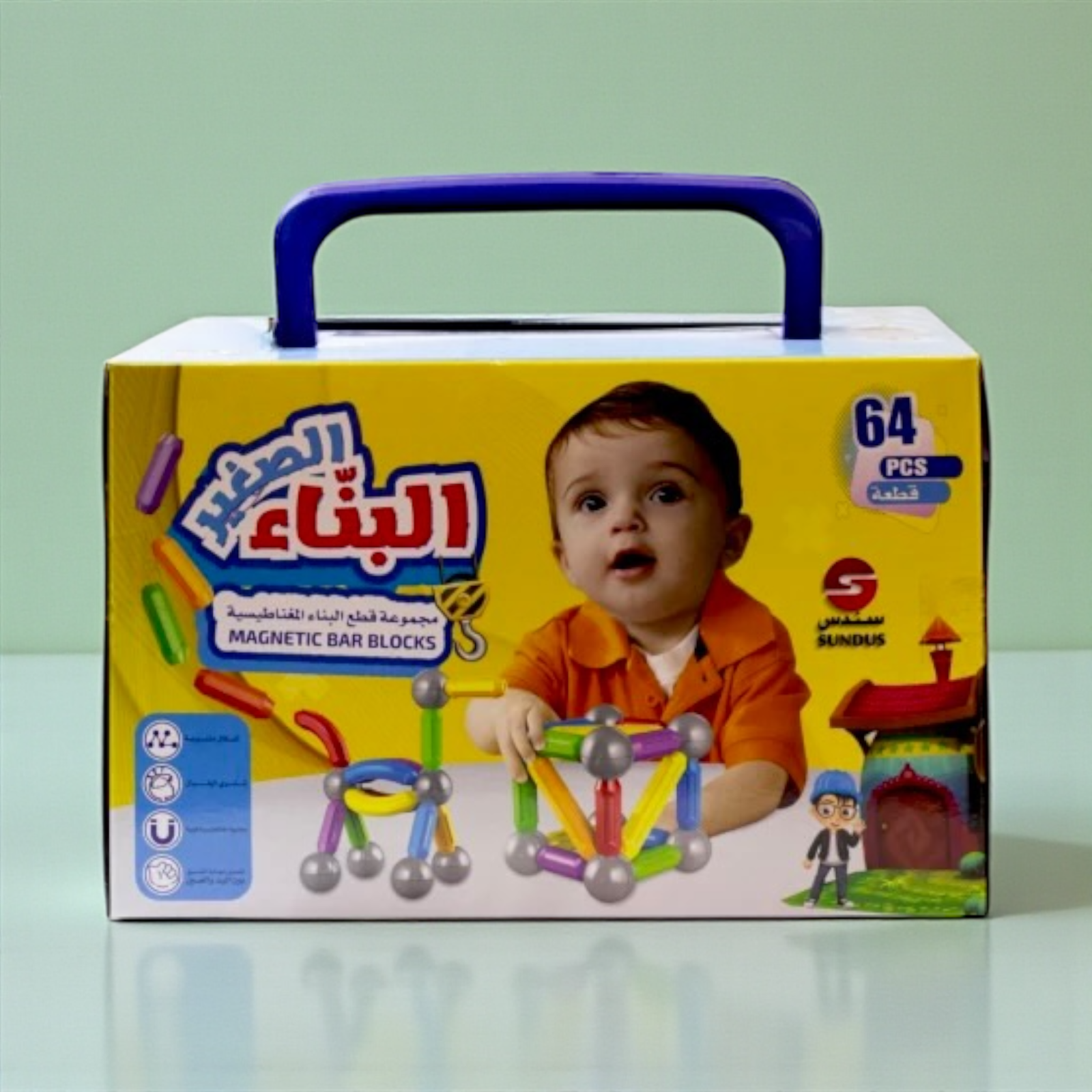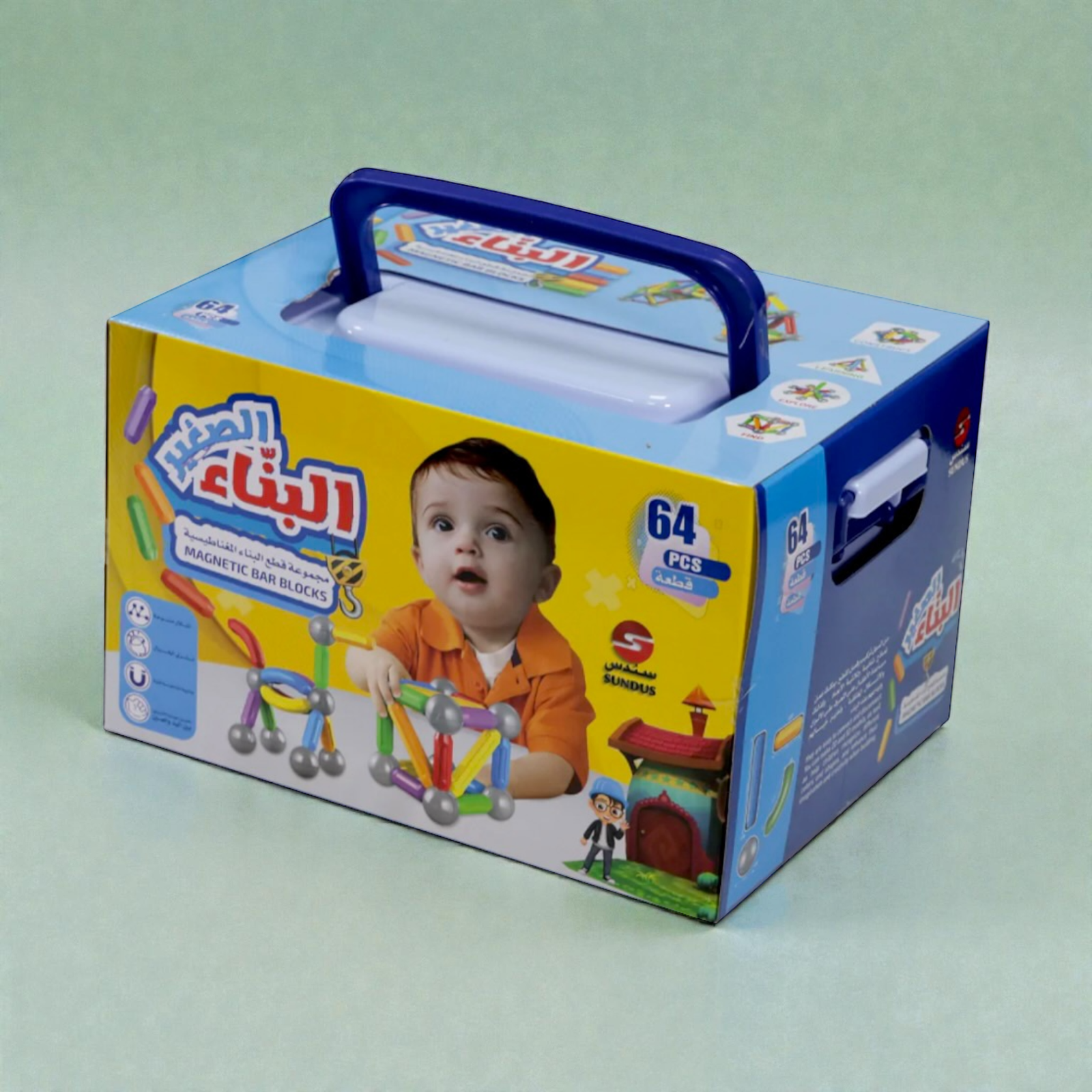 مجموعة مكعبات بناء تعليمية تحتوي على 64 قطعة. تساعد الأطفال على بناء هياكل مختلفة وتنمية مهارات التنسيق الحركي والإبداع والتصميم.