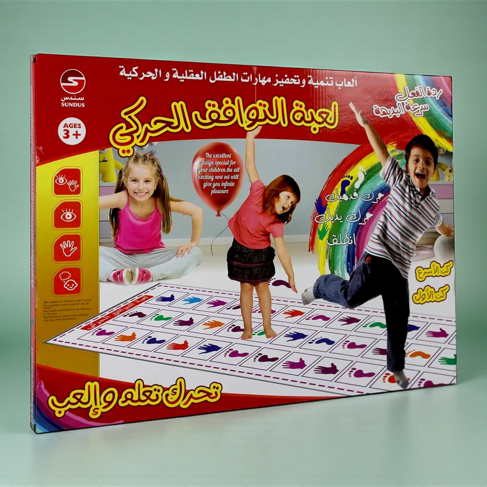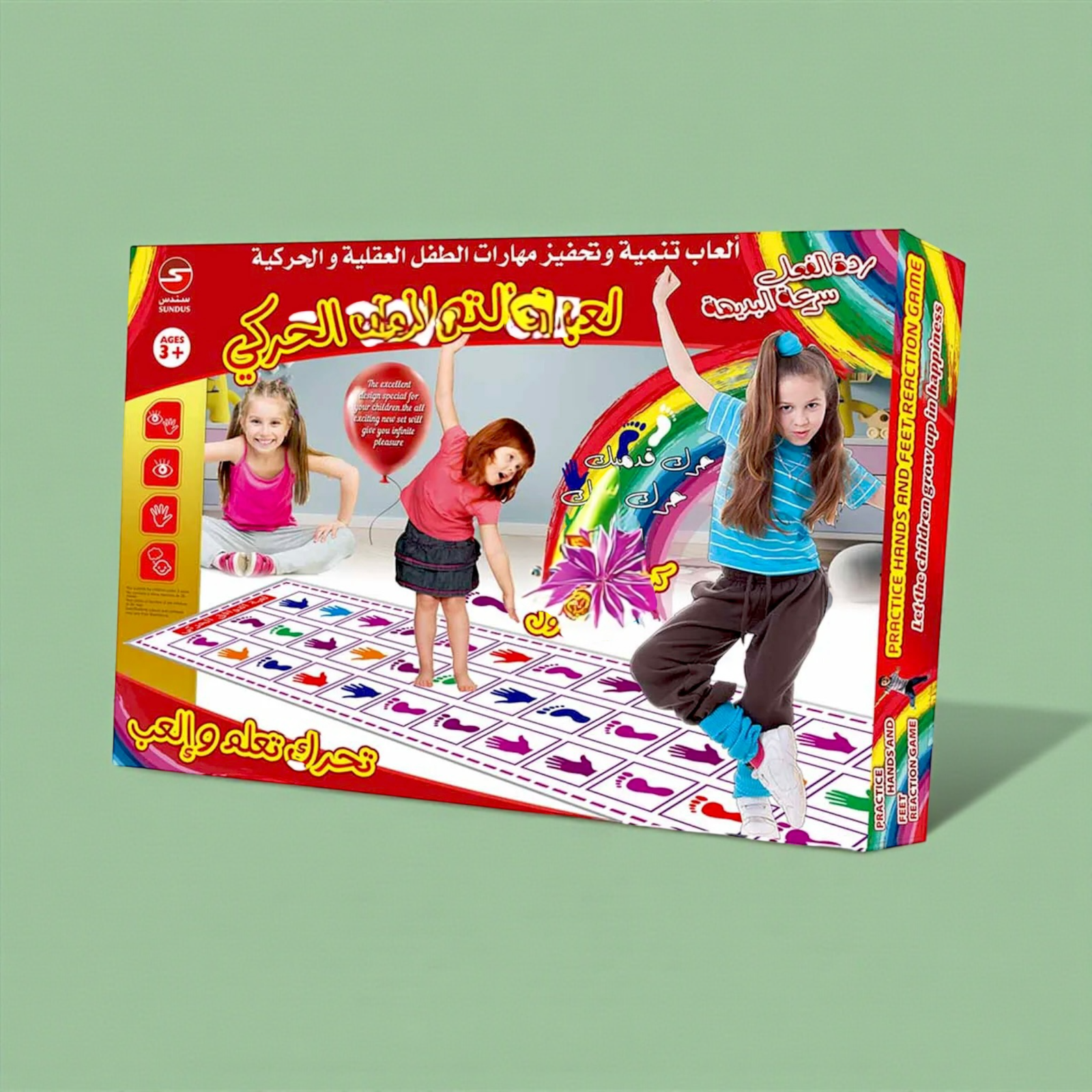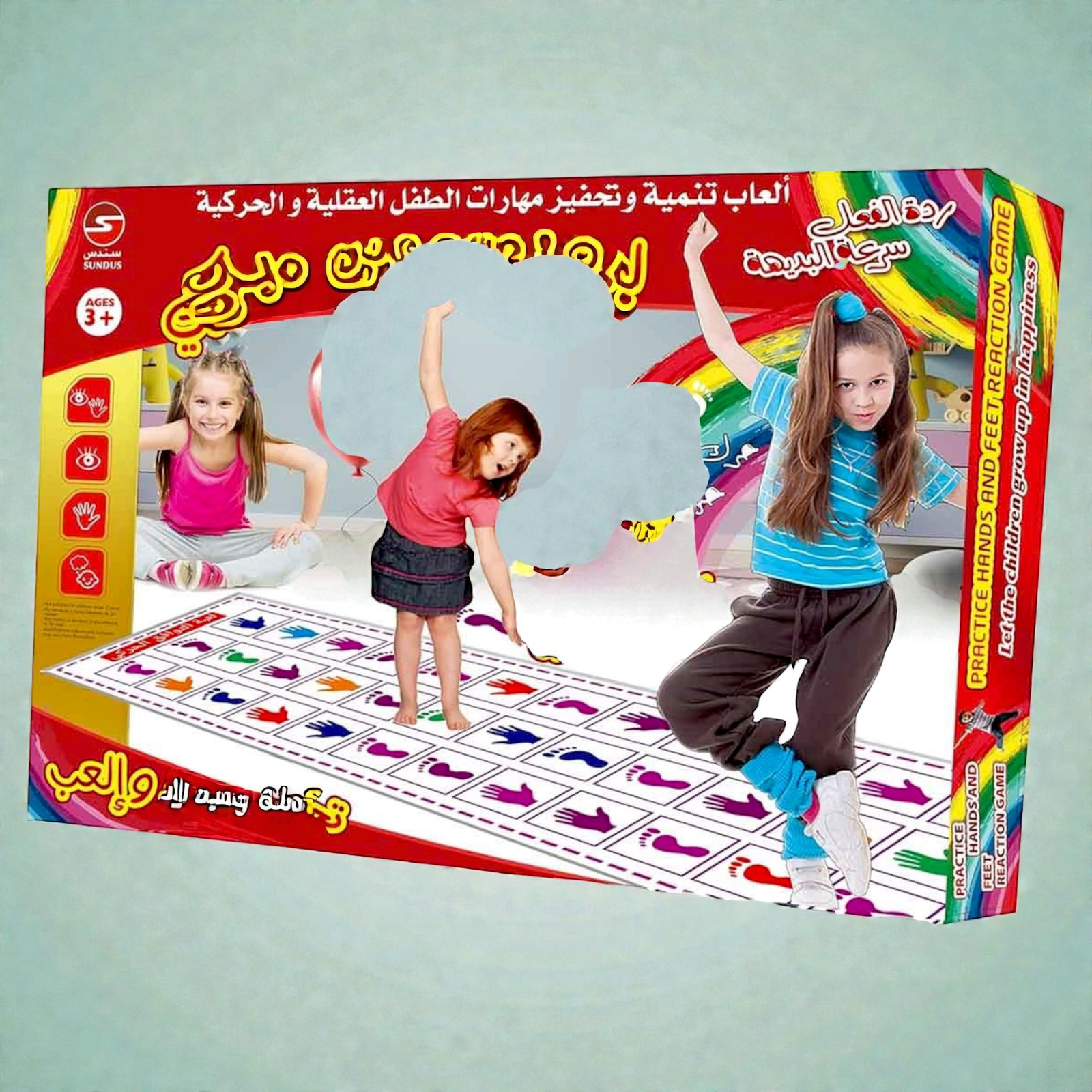 لعبة رد فعل سريع وممتعة تتطلب استخدام اليدين والقدمين لتنمية السرعة والتركيز لدى الأطفال. تتكون من سجادة لعب ملونة وأقراص تحمل أشكال الأيدي والأقدام، مما يجعلها لعبة حركية ممتعة ومناسبة للعب الجماعي.